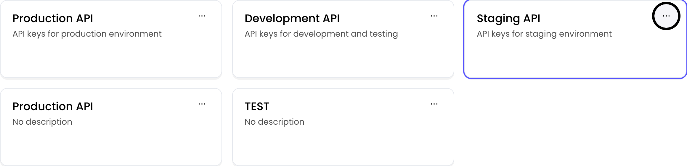 Each API agent has a default API key, calledProduction. To create additional API keys: