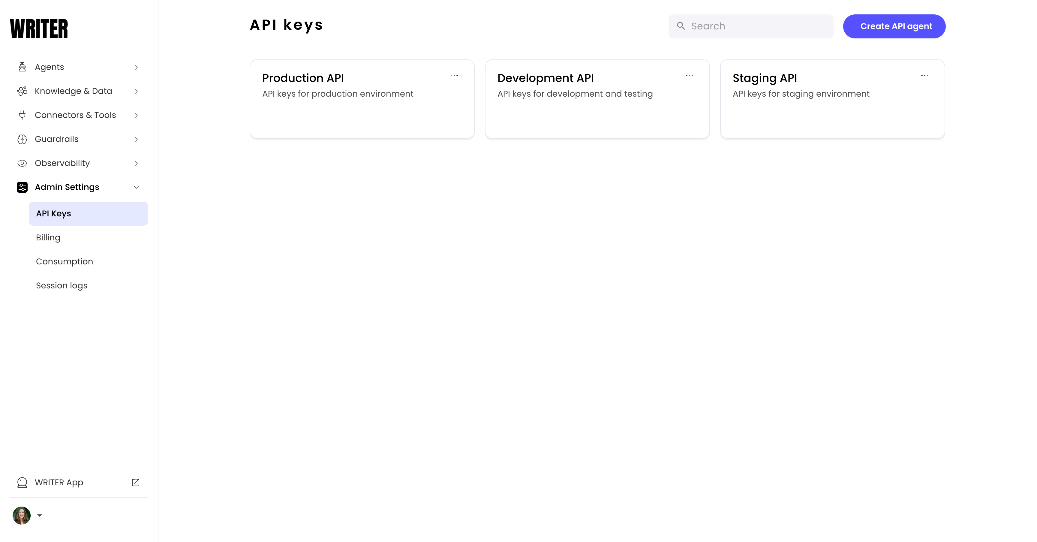 .env file (for example, WRITER_API_KEY=<API_KEY>).See your API agents and manage API keys