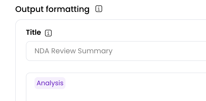 and runs a text generation workflow. It returns the analysis from the workflow in the Output formatting