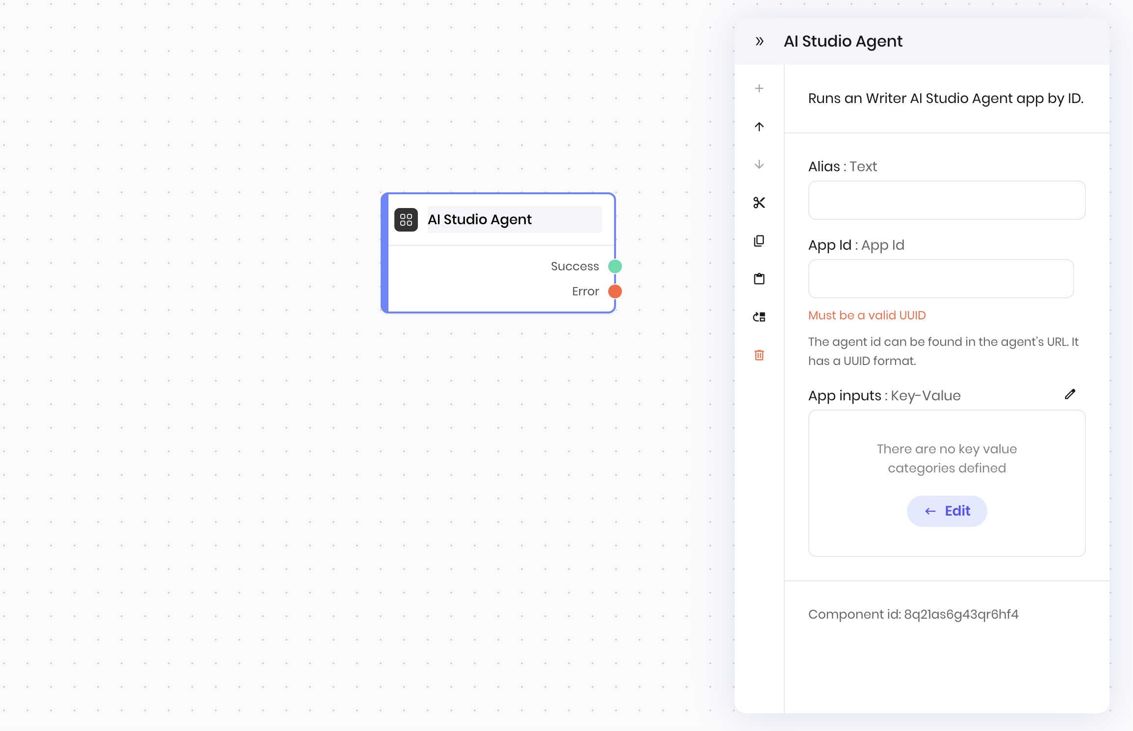 App Id | App Id | - | - | The agent id can be found in the agent’s URL. It has a UUID format. | - | Format: uuid |