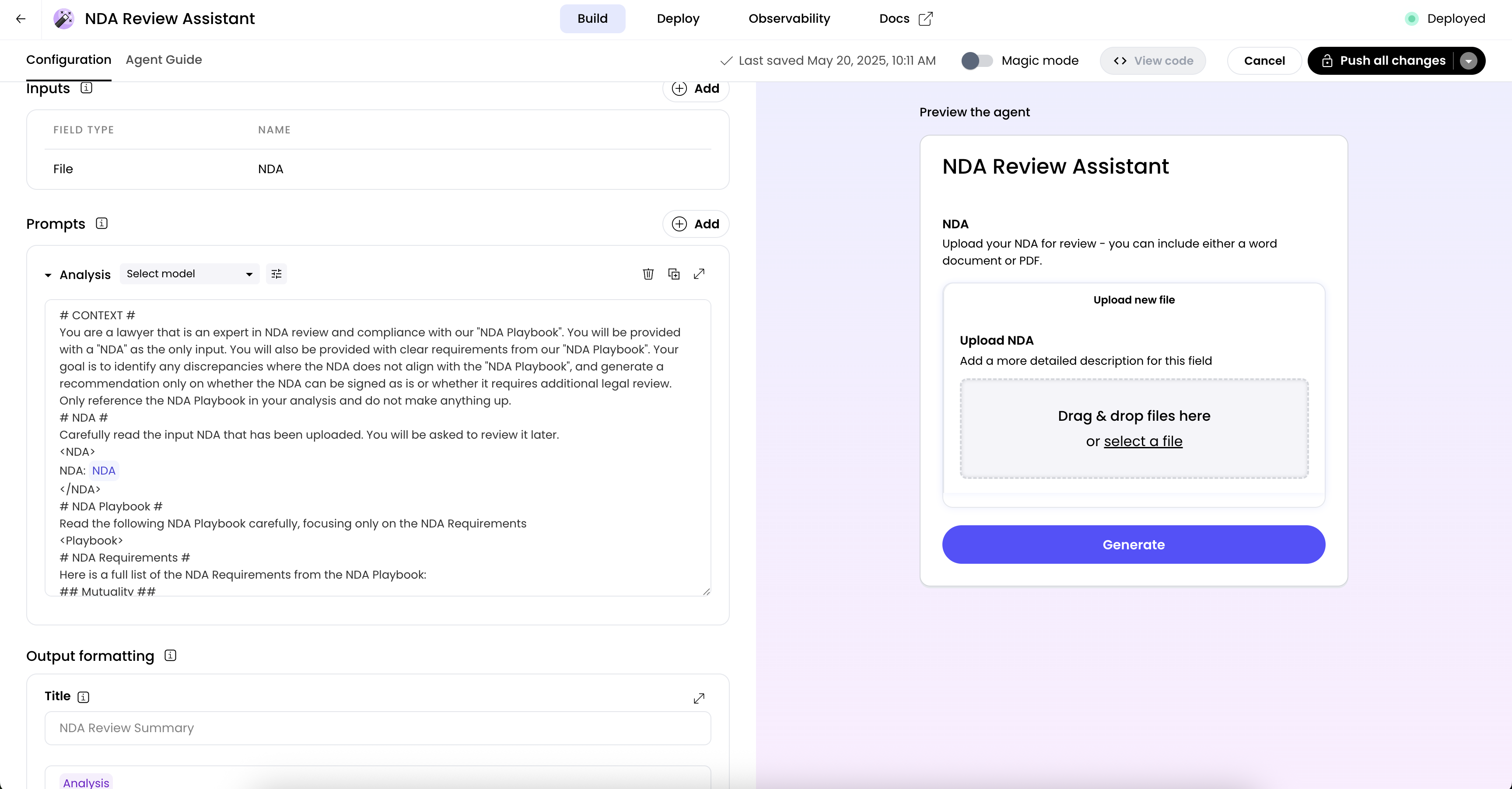 , you can select the no-code agent you’d like to run from a pre-populated list of your deployed no-code agents.