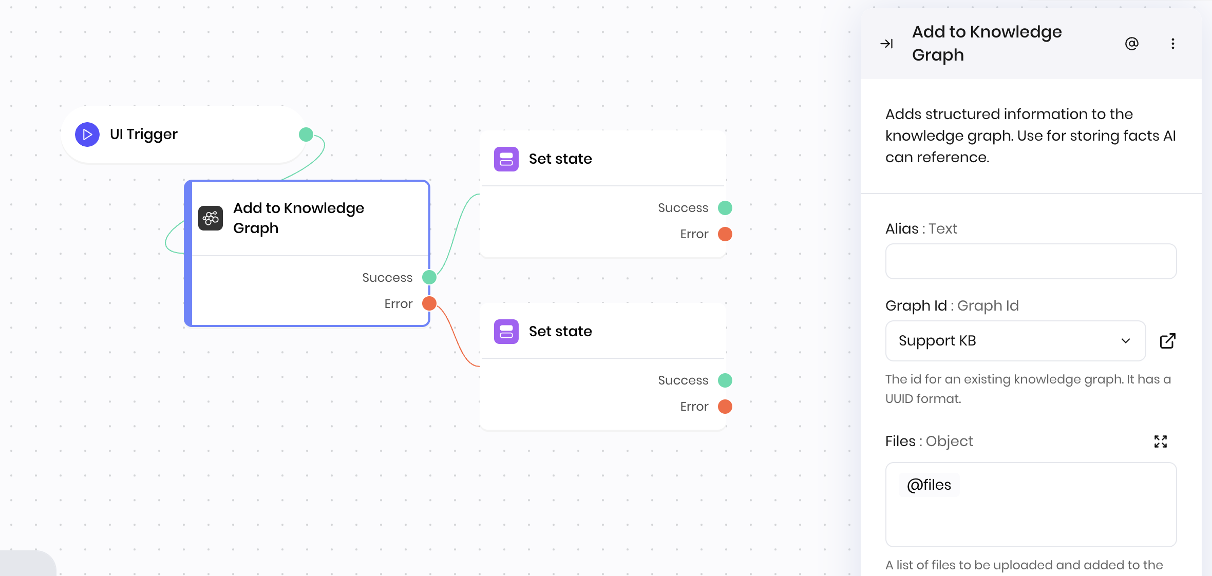 **Note**: Since `@{result}` is only available in the block immediately following the API Trigger, consider using a Set State block as your first block to store the payload data for debugging purposes.